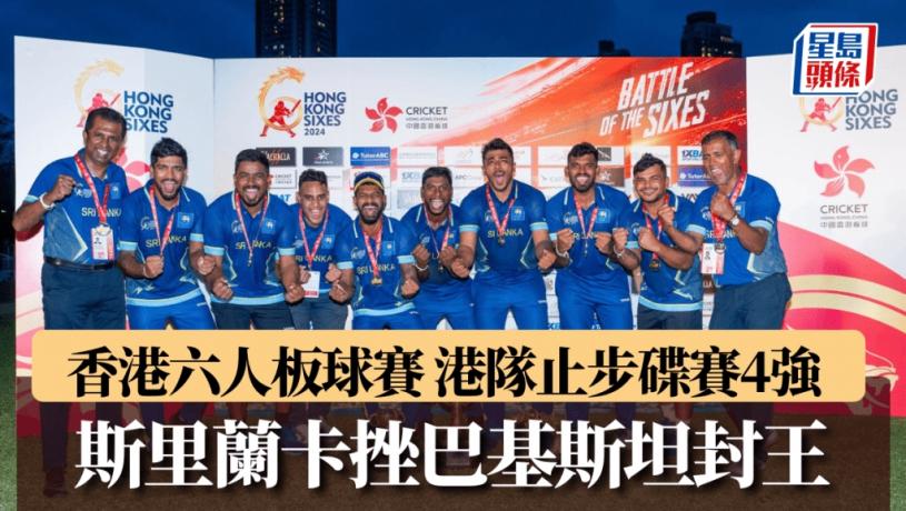 香港六人板球賽周日(3日)在天光道板球賽舉行煞科日賽事,盃賽決賽由斯里蘭卡鬥巴基斯坦,斯里 蘭卡憑藉出色防守限制對方得分,以 3 個 wickets 的差距奪冠,也是第 2 次在此賽事盃賽封王。 港隊則在周日早上賽事不敵南非,以碟賽 4 強畢業。