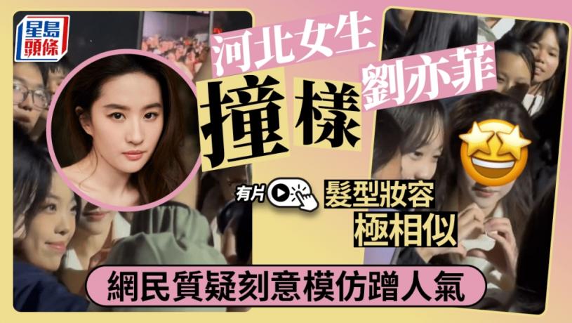 內地女星劉亦菲因為出眾外貌和氣質,出道即登頂,被民眾讚譽為「神仙姐姐」。近日河北有一名高校女生因外貌被指「撞樣」劉亦菲,在校園成為人氣學生被同學爭相合影。有網民認為,女生髮型及眼妝刻意模仿正主,甚至短片平台帳號也用上「下凡了」,明顯是刻意經營「A貨劉亦菲」的人設。