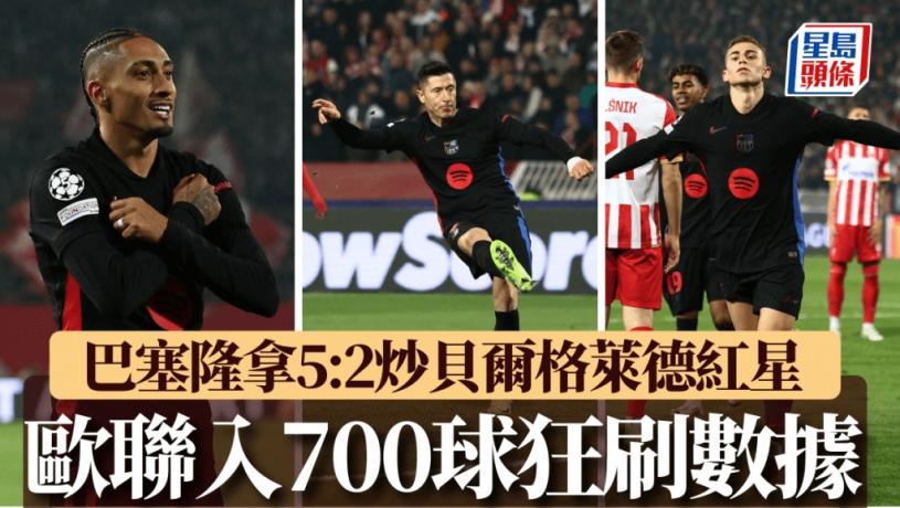 巴塞隆拿繼續保持瘋狂的表現,周三歐聯作客以5:2大炒貝爾格萊德紅星,連續3輪攻入4球或以上刷新隊史歐聯紀錄。同時,巴塞成為歷來第3支於歐聯累積入球突破700大關的隊伍。而巴塞今季各賽16戰累積入55球,亦改寫保持了74年的隊史首16場入球紀錄。