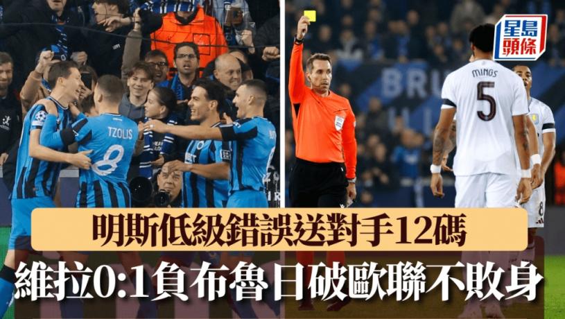 阿士東維拉頹勢未止,周三歐聯作客布魯日因後衛明斯(Tyrone Mings)一次低級錯誤被罰12碼,布魯日由隊長雲拿根射入極刑小勝1:0,而維拉各項賽事連輸第3場,歐聯全勝紀錄亦被打破。