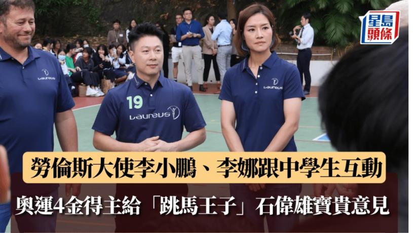 奧運體操4金得主李小鵬及2項大滿貫冠軍李娜,周三以勞倫斯學院學員身份到香港四邑商工總會陳南昌紀念中學跟學生們大玩欖球及分享心得,早年以「優才」成為「港人」的李小鵬今夏曾跟家人到巴黎觀看體操比賽,他大讚香港「跳馬王子」石偉雄「經歷了十分燦爛的運動員生涯」,認為他是時候可以考慮當教練,或者「邊練邊教」,早年以「優才計劃」成為「港人」的小鵬亦希望未來可以跟中國香港體操總會一同研究,幫助香港體操更進一步。