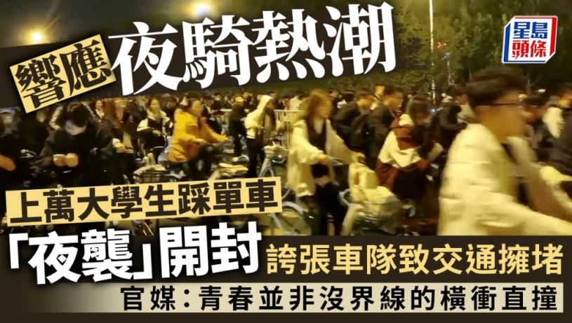 上萬名鄭州大學生夜騎共享單車「夜襲開封」,車隊凌晨綿延數十公里成為近期熱門話題。不過,這也引發交通堵塞、安全等問題,今天(9日)淩晨,開封官媒連推多條言論,倡議大學生不要紮堆騎行,要激情更要安全。美團等三大單車平台也發布倡議書,希望大學生減少「夜襲開封」行為。最新消息指,鄭州交警發交通管制通告,鄭開大道鄭州段非機動車道實施禁行。