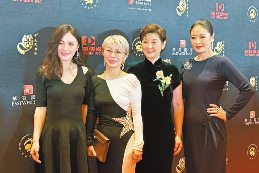 著名演員徐帆(右2)、演員姚笛(左1)與獲獎編劇合影。記者陸新攝