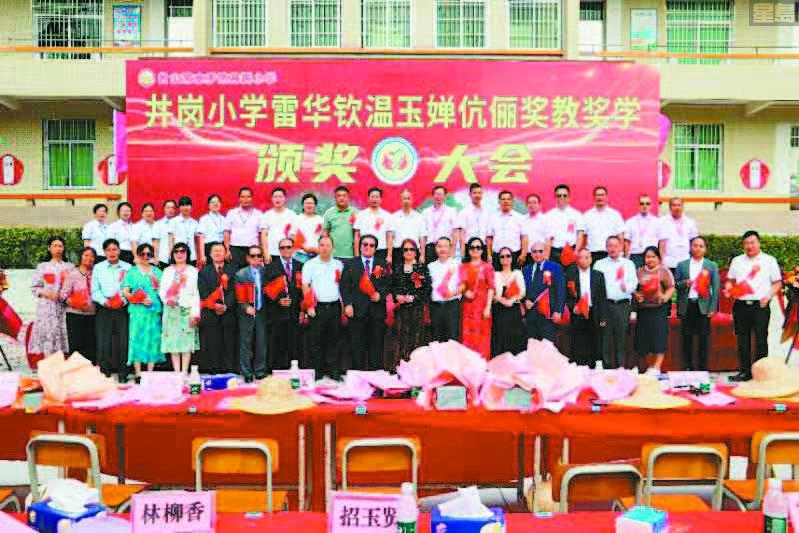 (僑社記者馬紅兵報導 )10月23日,台山水步鎮井岡小學舉行「雷華欽 溫玉嬋伉儷」獎學金頒