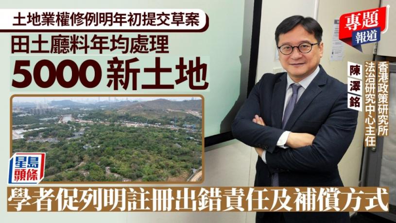 土地及樓宇業權涉及龐大資產利益,惟本港現有的「契約註冊制度」相對落後,即使是土地註冊處(田土廳)契約上的「物業擁有人」,亦未必等同「最終業權人」,易致業權糾纏不清。政府雖早於20年前已修法,惟條款至今未實施,更要待明年初再提修訂草案,冀以「新土地先行」方式解決。有法律學者向《星島》指,部分物業具凌駕性的「非註冊權益」,或需打官司才能釐清,理解當局推「新土地先行」以免觸礁,惟冀修訂草案列明註冊出錯責任,及可作申索的場景等。田土廳推算,推行「新土地」後每年約涉5000個土地登記冊,會接受電子註冊申請以提速。