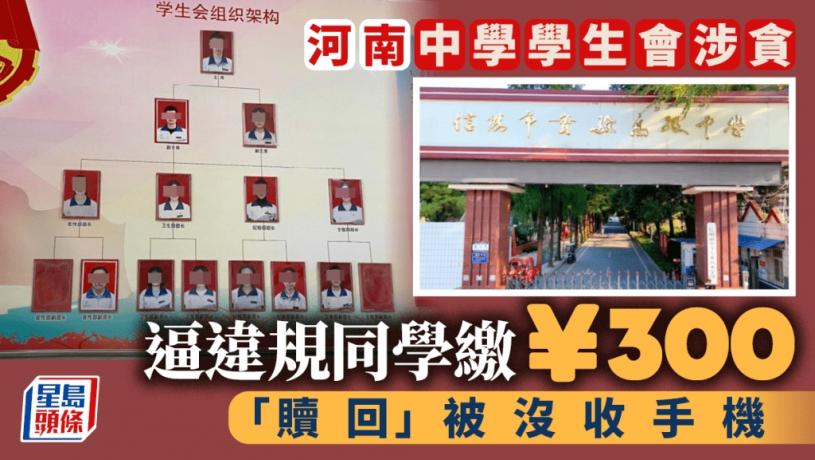 校園是社會縮影!河南有中學學生會的多名幹事,被揭發以不舉報違規學生受賄,如有學生手機被沒收,可支付300元人民幣取回。警方已介入調查事件。