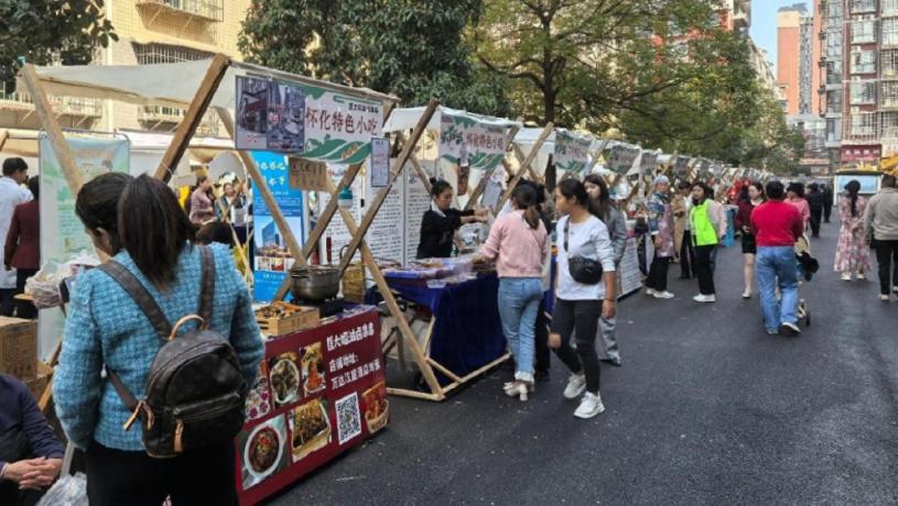 據鶴城區政府一工作人員介紹,這兩天長泥坡新村連夜在道路上鋪設瀝青,儘可能多地展示懷化特色。攤位除了展售懷化特產外,長泥坡新村還邀請了一些表演團隊為遊客帶來精彩的演出。