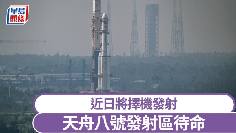 天舟八號貨運飛船及火箭組合體已在發射區待命。(中新社)