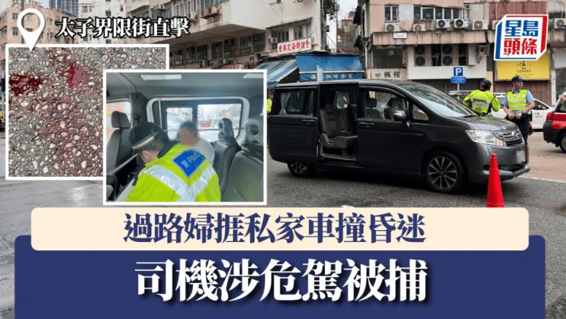 太子發生交通意外。今日(13日)早上8時27分,一輛私家車駛至界限街與楓樹街交界時,撞倒一名過路婦人。婦人頭部受傷倒地昏迷,救護員趕到,將62歲姓陳女事主送往伊利沙伯醫院搶救。警方經調查後,以涉嫌危險駕駛導致他人身體嚴重受傷,拘捕61歲朱男司機。
