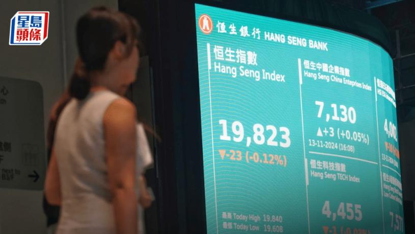 恒指低開175點,早段跌幅曾擴大至238點,低見19608點,之後反覆向上,收窄跌幅至6點,收市報19823點,跌23點。國指收報7130點,倒升3點;科指收報4455,跌1點。