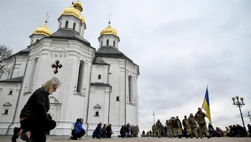 烏軍為在庫爾斯克戰鬥中喪生的戰友舉行葬禮。 路透社