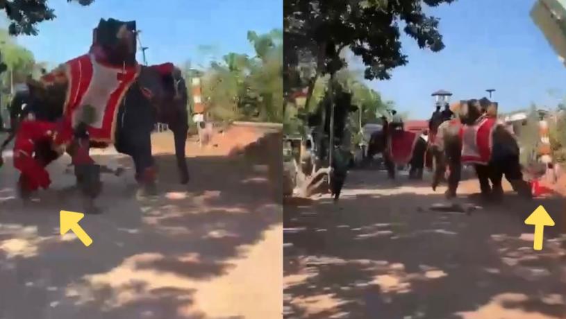 不過,可能由於天氣太熱,一頭雄象突然在遊行途中失控,將坐在象背上的女信徒帕麗雅萬(Preyawan Karakulpoonperm)和同伴重重甩落地面,還反覆朝2人狠踩,造成47歲的帕麗雅萬與另一名女信徒身受重傷。這頭雄象也用象鼻打飛一名61歲男子,導致男子撞上旁邊的電單車,胸部受重創。