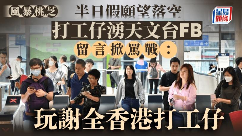 願望落空的打工仔知道消息後,立刻湧到天文台Facebook鬧爆8號風球生效及改發3號風球時間,「其實鐘意睇大遷徙可以移民去非洲,唔好滾搞最鐘意返工既香港人⋯⋯大家都為啖飯,何必為難上班族呢!」、「其實掛多半日好難咩?」、「係要玩謝全香港打工仔先開心」、「點會揀呢個時間落波㗎,陣間香港交通癱瘓」。