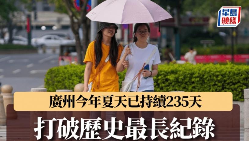 廣東省政府新聞辦公室微信公眾號「廣東發布」昨日表示,廣州今年的夏季已從3月23日持續至11月13日,長達235天。歷史上,廣州最長夏天是在1994年,為234天。