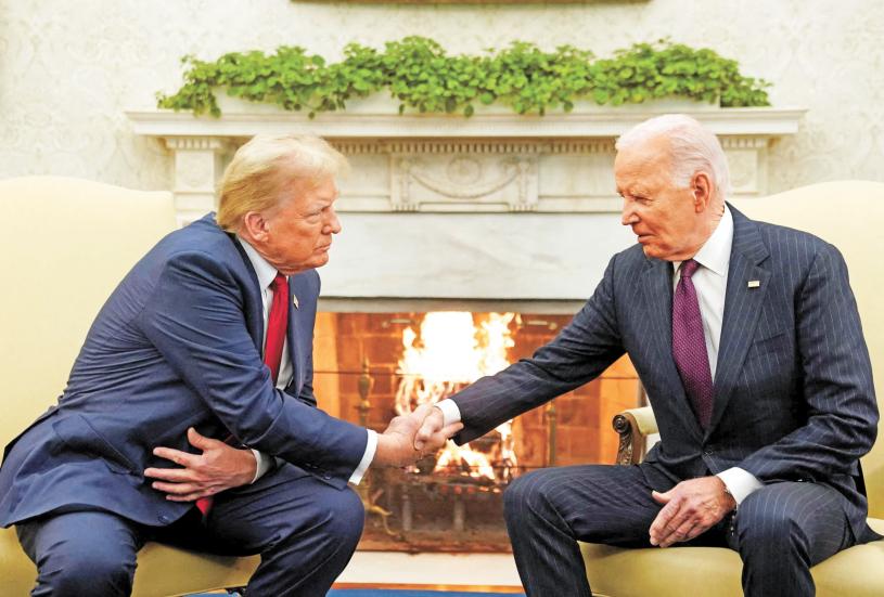 候任總統特朗普13日應邀前往白宮,與現任總統拜登商討政府交接安排,兩人在鏡頭前氣氛融洽,拜登更向特朗普表示「歡迎回來」。在與拜登見面前,特朗普抵達華盛頓後先與共和黨眾議員見面,暗示黨團可以為他爭取第三屆任期。