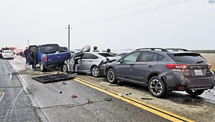 中加州152號公路遭受一股強勁沙塵暴吹襲,引發20輛車連環撞,造成多人輕傷送醫。