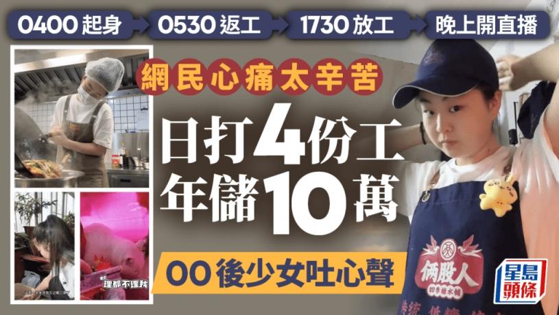 內地傳媒《錢江視頻》報道,23歲的小王全職工作是在餐飲店打工,每天凌晨5時半上班、下午5時半下班,午休時分別在糖水鋪和電影院做兼職。