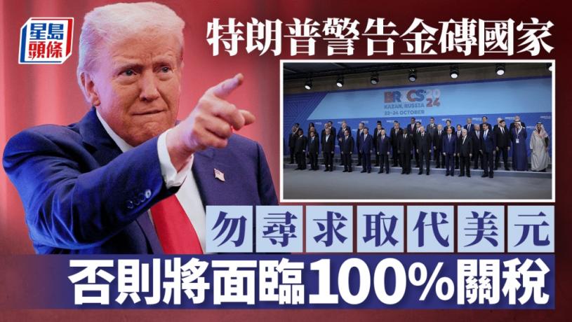 路透社報道,特朗普說:「我們要求這些國家做出承諾,他們不會創造新的金磚國家貨幣,也不會支持任何其他貨幣來取代美元,否則他們將面臨100%的關稅,並且應該準備告別向美國出售商品。」