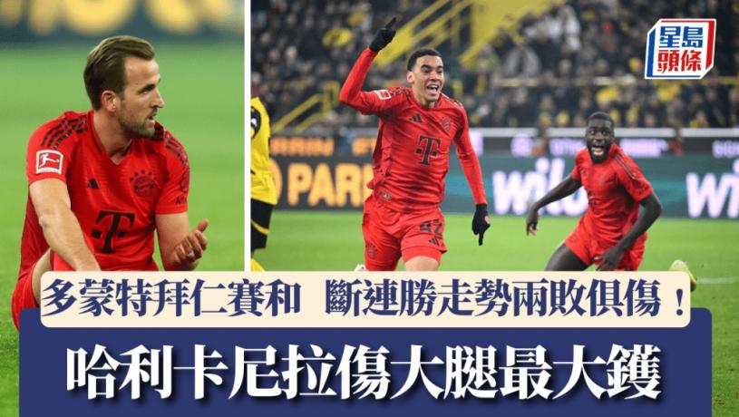 周六德甲國家打吡,多蒙特主場與拜仁慕尼黑賽和1:1。雙方今仗各得1分,但同樣可說是兩敗俱傷,蜂軍本季各項主場比賽全勝的走勢各一段落;而拜仁賽前的7連勝兼不失球的強勢亦到此為止,更重要是其首席射手哈利卡尼在上半場拉傷大腿肌肉退下火線,儘管他在賽後表示傷情並不嚴重,但周二對利華古遜的德國盃16強勢缺陣。