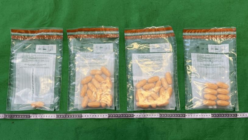 截至今日(12月1日)下午5時,被捕人士已從體內排出38粒共重約680克懷疑可卡因。政府新聞處圖片