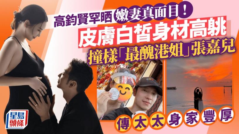 40歲前香港先生冠軍高鈞賢(Matthew)近年事業愛情兩得意,不但定居內地發展賺到盤滿缽滿,而且感情生活亦同樣幸福美滿。今日(2日),高鈞賢在社交網上發佈多張婚照及孕照宣佈與年輕10年的圈外女友雙喜臨門,二人早前在加拿大註冊結婚,而且太太的預產期是明年1月,引來大批網民送上祝福。不過,其後就有不少網民直指高鈞賢太太顏值平平,更有幾分撞樣當年因包包臉而獲封「豬扒港姐」的2007年港姐冠軍張嘉兒。