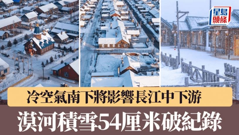 據中央氣象台網站今日表示,北方冷空氣南下,中國北方已進入寒冬。今晨中國「北極」黑龍江漠河積雪達到了54厘米,打破當地觀測史最深積雪紀錄。此外、黑河愛輝區56厘米、呼中56厘米,也都維持著最深積雪紀錄。塔河53厘米,為下半年最深積雪紀錄,觀測史第二深。