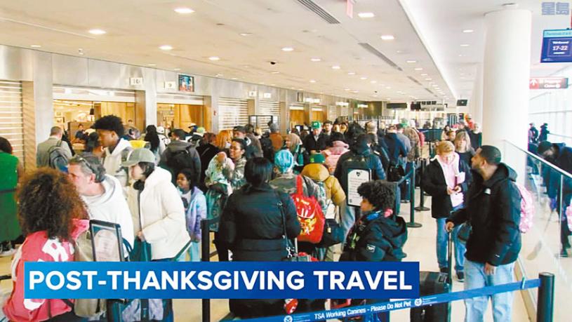 運輸安全管理局(TSA)表示,全國機場在感恩節後的星期天共迎來380萬名旅客,比7月暑假創下的原有紀錄還要多出7.4萬人。不過多個州份受到惡劣天氣影響,也有數十萬旅客行程受阻。