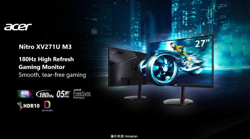 Acer Nitro 27 吋 WQHD 遊戲顯示器,讓遊戲視覺體驗全面升級!2560 x 1440 的 WQHD 高解析度搭配 IPS 面板,不僅畫質細膩,還能確保色彩準確,搭配 DCI-P3 95% 廣色域,色彩表現更豐富,畫面鮮活逼真。追求流暢體驗的玩家也能滿足,AMD FreeSync 高級技術,有效減少畫面撕裂與延遲。更新率高達 180Hz(顯示埠),反應時間最低可達 0.5ms(G to G),讓你在激烈的對戰中時刻快人一步。人體工學設計更是一大亮點。傾斜、旋轉、樞軸調整以及 4.7 吋高度調整範圍,配合 VESA 安裝標準,讓你輕鬆找到最舒適的觀看角度。再加上豐富的連接埠選項(顯示埠、HDMI 2.0 和音訊輸出),兼容性極高。