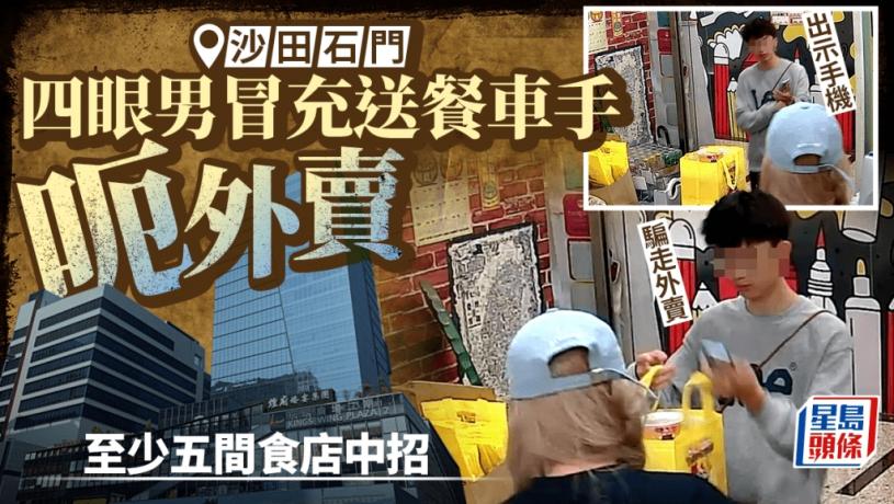 沙田石門驚現送餐騙徒!一名蠱惑男子向食店職員出示手機,冒充送餐車手,取走價值約200元外賣,職員事後收到送餐公司客服電話查問外賣下落始知受騙。據了解,近月京瑞廣場一帶至少五間食店受騙,騙徒疑曾當過送餐車手,熟悉運作,有苦主把騙徒犯案過程上載互聯網,提醒行家小心。
