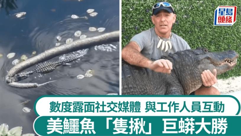最近,美國一名女導遊帶領遊客參觀位於佛羅里達州的大沼澤地國家公園(Everglades National Park)時,目擊一條長約3.6米的鱷魚與一條約6米的巨大蟒蛇「隻揪」。鱷魚戰勝後,叼著蟒蛇屍體游走。該鱷魚在當地是頗有名氣的網紅,名叫Godzilla。園區曾數次發布工作人員與Godzilla互動的場景,包括與牠玩耍、睡覺等。