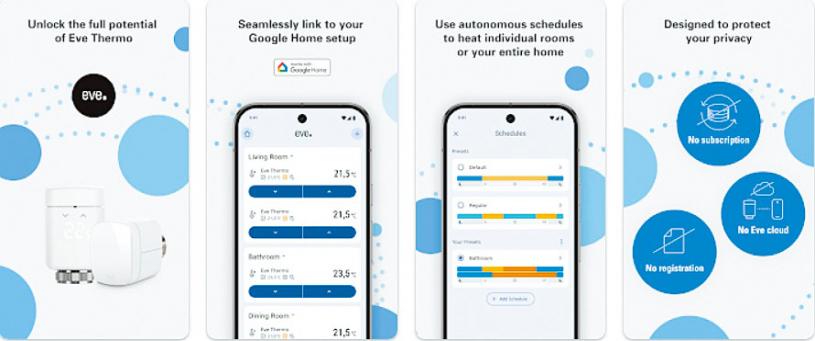 有這款新安卓程式後,用戶可透過Matter將Eve Thermo新增至Google Home,並在該平台上控制它,以及與任何其他與Matter相容的平台分享。它同時也添加到Eve程式中,讓你在那裡可以存取其他功能,例如建立和管理自主地設備排程。