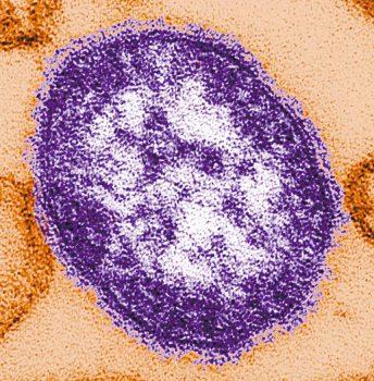 麻疹病毒顆粒的電子顯微鏡影像。CDC/美聯社