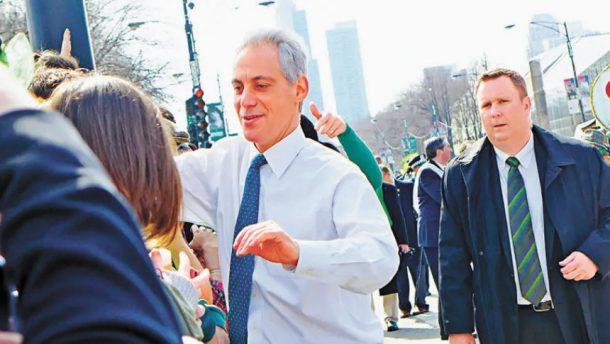 美國駐日本大使伊曼紐,圖為他擔任芝加哥市長期間,參加聖派翠克大遊行時與民眾問好。 梁敏育攝/本報檔案照