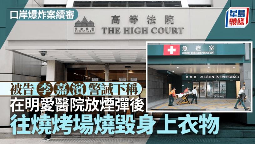 被告李嘉濱在2020年3月8日凌晨的警誡錄影會面中,稱自己同年1月27日凌晨在明愛醫院急症室男廁內放置「煙彈」後,約一分鐘便離開,而該「煙彈」裝有電路板,接收訊號後會通電,「一通電就會着火」。李嘉濱稱不知道誰負責發送訊號,但他離開明愛醫院、上了的士便通知「五飛」他已放置「煙彈」;控方開案陳詞曾指稱「五飛」即何卓為。