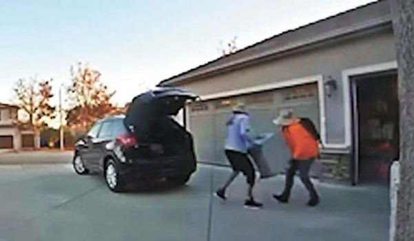 嫌犯們先將車停在車道上,第一名嫌疑人下車並打開後車箱,第二名嫌犯則從屋內打開車庫大門。