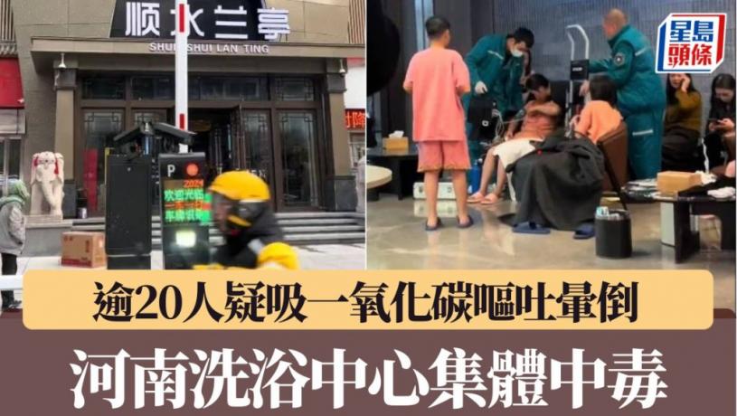 河南鄭州一間新開張的洗浴中心,發生懷疑一氧化碳集體中毒事件,女浴區有傳逾20名客人不適部份暈倒,要送院救治。當地官方通報已成立工作組調查,涉事洗浴中心已暫停營業,但未提及具體不適人數,只透露全已送院治理,狀況穩定。