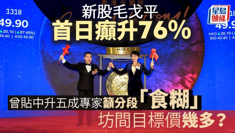 【毛戈平招股/IPO】市場焦點新股毛戈平(1318)首日掛牌不負眾望,開市股價高開近60%後,最多曾升92%至57.2元,最終收市報52.6元,續升逾76%,一手100股賬面可賺2,280元。對於後市走勢,早前大膽預期該股首日股價升幅至少50%的信誠證券聯席董事張智威(Alvin)向《星島頭條》表示,投資者可分階段「食糊」,坊間目標價則為60元,惟個人不太建議高追。