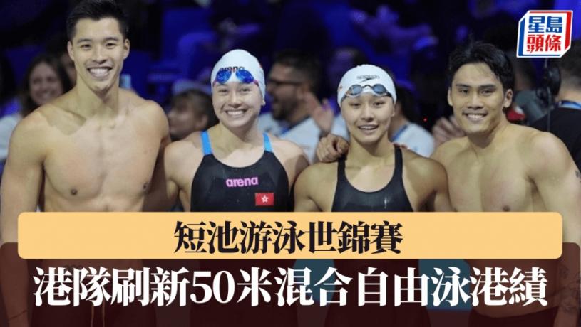 另外,男子4X200米自由泳接力,港隊由何承燁、王一舜、趙浩俊及關鵬出戰以7分18秒72完成,無緣決賽,但仍然打破兩年前創下的香港紀錄。個人賽方面,楊凱晴在女子100蝶初賽以58秒30刷新個人最佳成績、排在23位;出戰男子100米蛙泳的趙浩俊及麥世霆,初賽分別游出2分06秒19及2分06秒65,以並列14及並列18位完成。