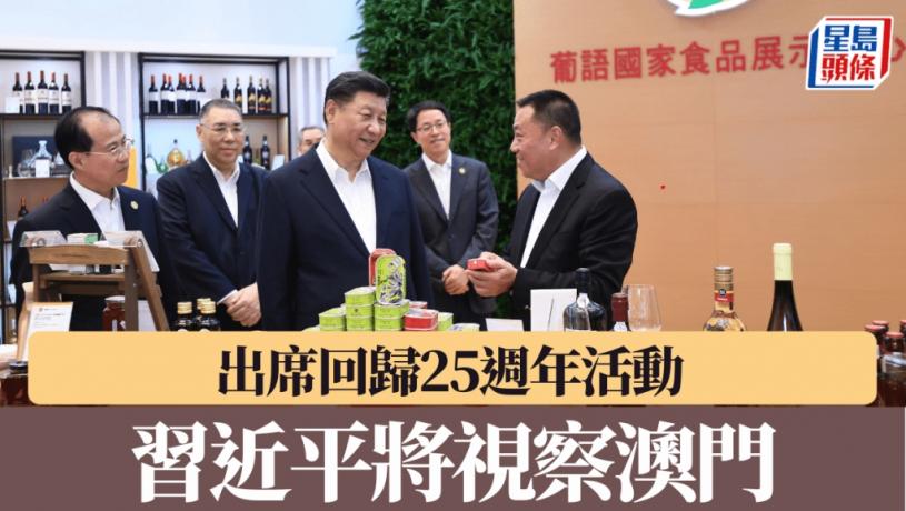 新華社公布,中共中央總書記、國家主席、中央軍委主席習近平,將於12月18日至20日赴澳門,出席慶祝澳門回歸祖國25周年大會暨澳門特別行政區第六屆政府就職典禮,並視察澳門特別行政區。