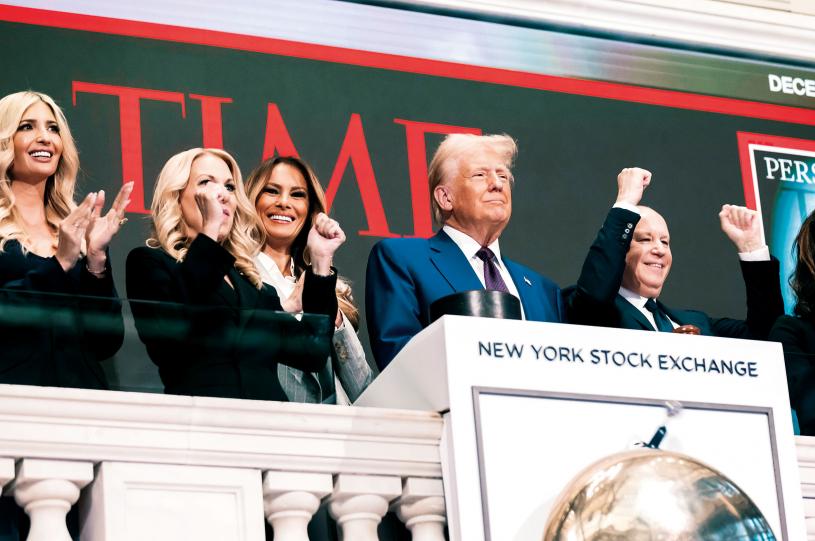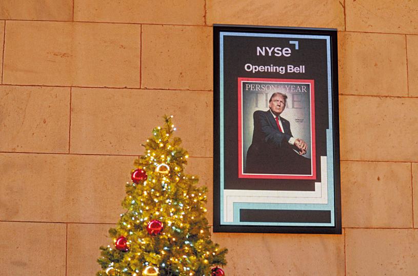 候任總統特朗普第二度當選為《時代》雜誌年度風雲人物,並獲邀前往紐約證券交易所,主持開市敲鐘儀式。特朗普在部分家人和新政府成員陪同下亮相,表示能夠出席場合是「極大榮幸」。