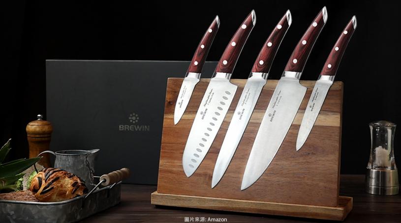 Brewin CHEFILOSOPHI 日本廚師刀套裝,讓烹飪從此升級成藝術!五把精心打造的超鋒利刀具,搭配優雅的紅色紫檀木手柄,符合人體工學設計,使用起來穩定又舒適,切肉、剁菜、削皮都能輕鬆搞定,廚房小白也能秒變大廚。刀刃採用德國高碳不銹鋼製成,硬度達到56+,鋒利持久,抗腐耐用,哪怕每天用也能保持如新狀態。每把刀都經過嚴格品質檢測,從設計到細節都散發出專業廚具的氣場。豪華禮盒包裝,送人自用都超有品味!