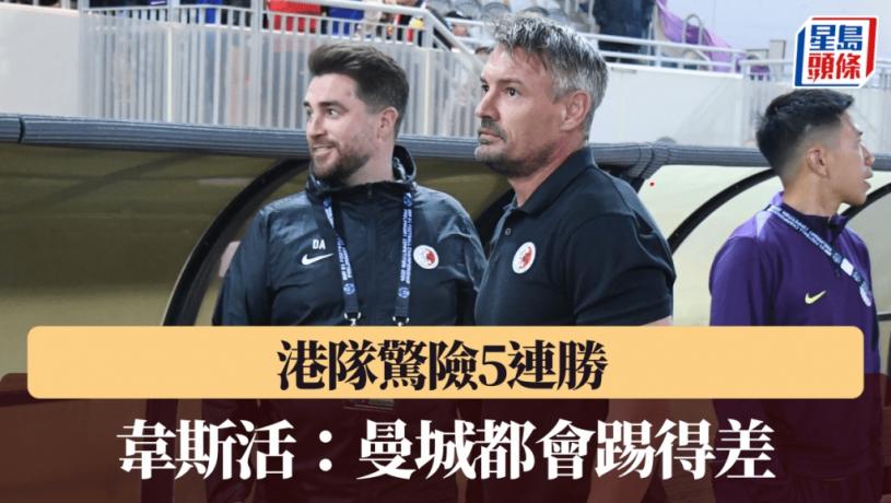 問及今場艾華頓不時被人緊盯,港隊會否有任何地方需要再改善時,韋斯活說:「有時候我們贏波,但未必每個星期都可以踢得很精采,曼城也有踢得差的時候,即使之前他們有段時間接連踢得很好。港隊仍然有進步空間,有時候要試不同元素,可能是用死球戰術入波,總是要尋找不同方法。」