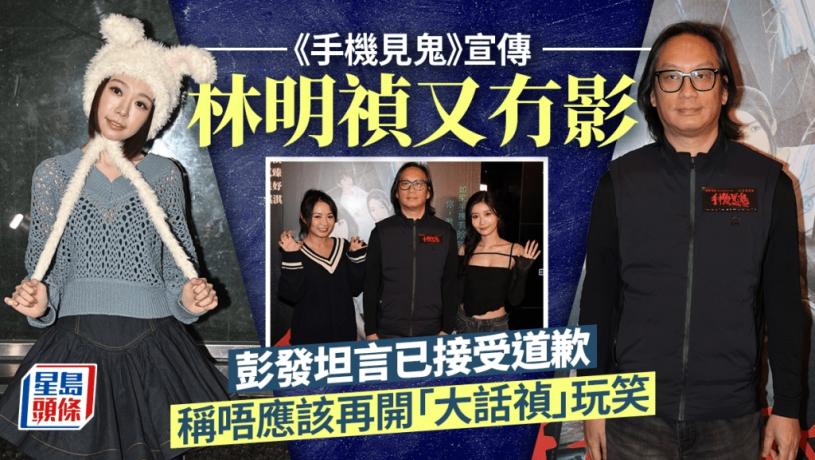 林明禎早前「甩底」出席主演電影《手機見鬼》首映禮,事後導演彭發以「估佢唔到」寸爆林明禎,雖然昨日林明禎出席活動時表示已向導演道歉,並指對方笑容滿臉並已接受道歉,又表示稍後也會出席該片的宣傳及謝票活動,不過今日(14日)導演帶同演員陳苡臻及譚淇淇在奧海城進行謝票時,卻不見林明禎蹤影,電影公司解釋今日沒安排林明禎。至於另一主角陳星妤則因腳部受傷而未能出席,而游學修女友陳苡臻則身穿低胸現身。