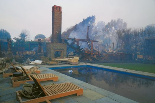 一個世紀前,帕利塞茲Palisades 曾經是名人青睞的富裕海濱社區,現在只剩下黑色的灰燼和廢墟。美聯社