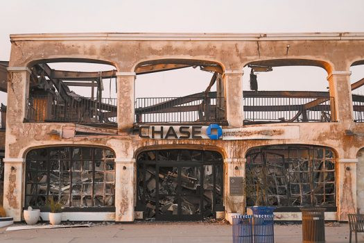 太平洋帕利塞德社區的一間大通銀行分行在大火中受損。美聯社