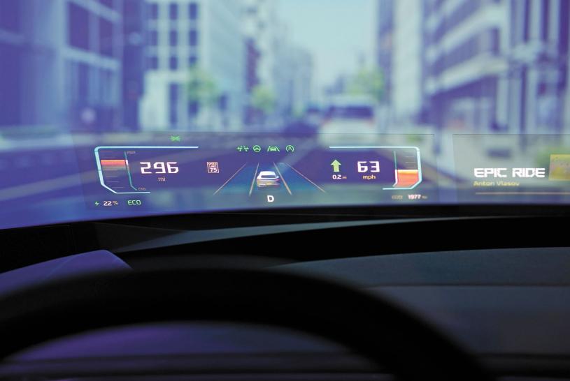 「現代摩比斯」的全像儀表板正是為此而設計,相信仍需多年後才推出市場的該技術,將不同資訊投影到整片擋風玻璃上,包括車速和安全警告等,同時提供娛樂選項。為了讓司機保持視線在馬路上,這片全景顯示會依據用家坐的位置而變,公司的示範帶顯示,副駕駛座的乘客可以透過擋風玻璃看電影或玩電子遊戲,但司機看不到。