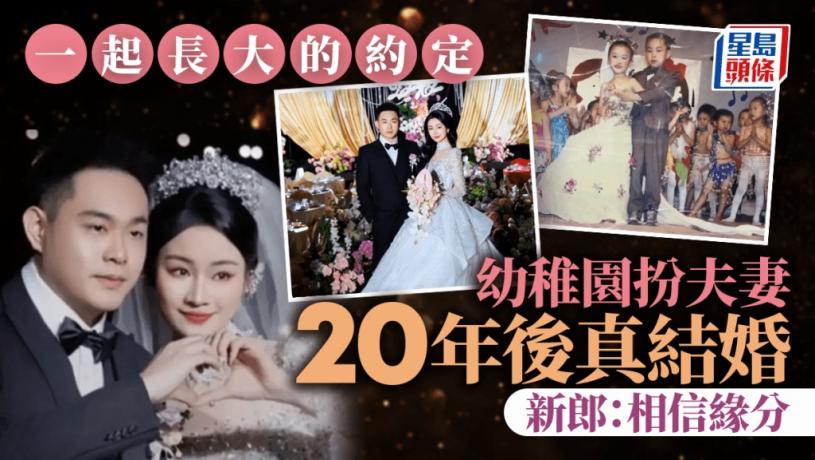 廣東潮州一名鄭先生於周二(7日)舉辦婚禮,他的新婚妻子與他是幼稚園同學,更曾經在舞台表演中扮演一對夫妻。兩人的親朋好友都大感驚奇,想不到20年後,兩人假戲真做,步入婚姻殿堂。