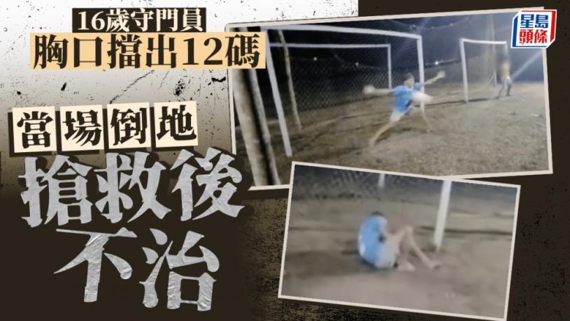 16歲少年防守點球時被擊中胸口。網上片段截圖