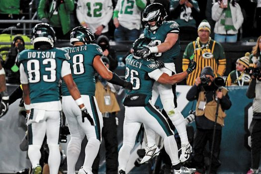比分優勢在手的老鷹選擇掌控節奏,以路面進攻為主結合短傳,打出一波耗時7分23秒的攻勢,由伊里亞德踢中30碼射門,19:10將比分拉開至兩個球權分差。包裝工半場四檔強打未完成,老鷹進一步消耗對手暫停,伊里亞德32碼射門再中,22:10拉開。包裝工最後3分鐘需追2個達陣,但隨著勒夫在中場附近的傳球被老鷹角衛米切爾完成抄截,比賽失去懸念。老鷹順利晉級國聯半決賽。