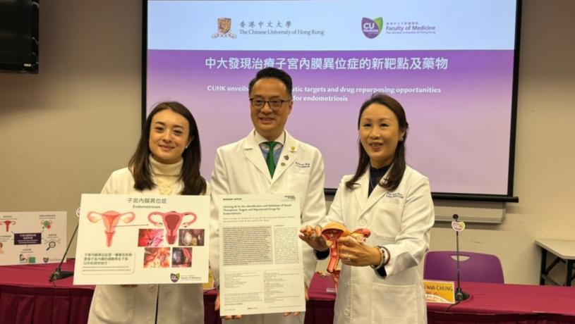 【子宮內膜異位症/輔助生殖技術/中大醫學院/婦產科】子宮內膜異位症是常見的婦科疾病,中大醫學院今日(14日)發表研究結果指,利用人工智能系統進行疾病基因分析,識別出兩個子宮內膜異位症的新治療靶點,並發現一種現有治療乾眼症的非類固醇抗炎藥物有助抑制異位內膜組織的生長,能夠「舊藥新用」,成為子宮內膜異位症的新治療方案。